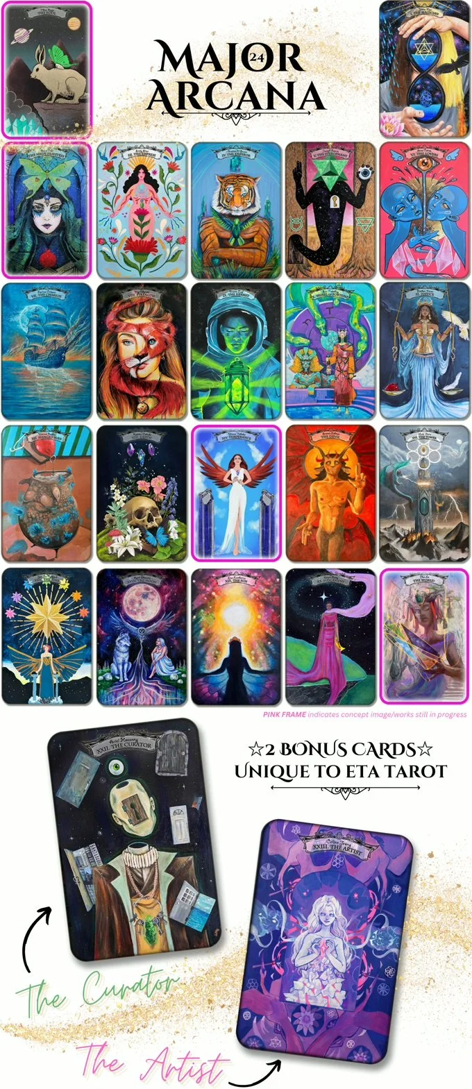 Elevate Toronto Artists (ETA) is an artist collective that brought together over 40 Canadian artists to create a collaborative and one-of-a-kind tarot deck, titled ETA Tarot. Each of the 80 cards represents an original, physical painting created using traditional media on canvas and wood, with a production timeline spanning six months.