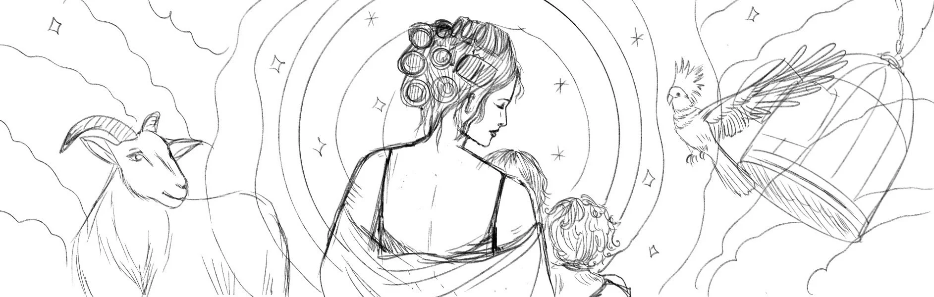 Each piece called for a different emotional approach—Sookie Woodrow had a darker, haunting tone, exploring themes of trauma, identity, and release. While Milk explored softness, maternal love, sacrifice and pain and the world as seen through a child’s eyes. The commission allowed me to fully use my own illustration style and sources of inspiration, which made the process especially enjoyable. The process was done with Procreate and Photoshop.